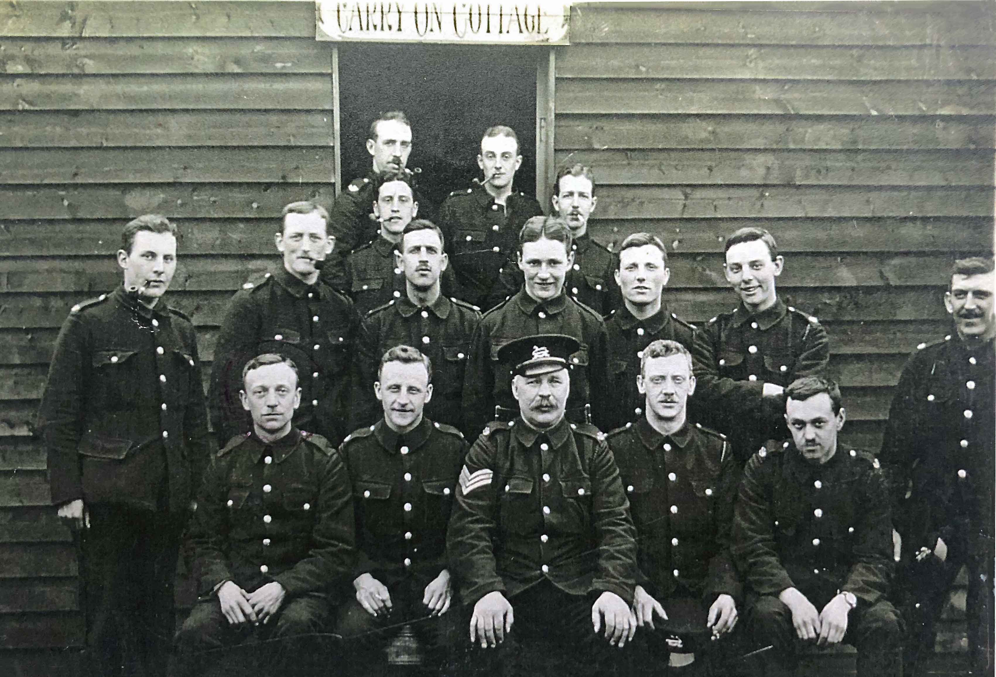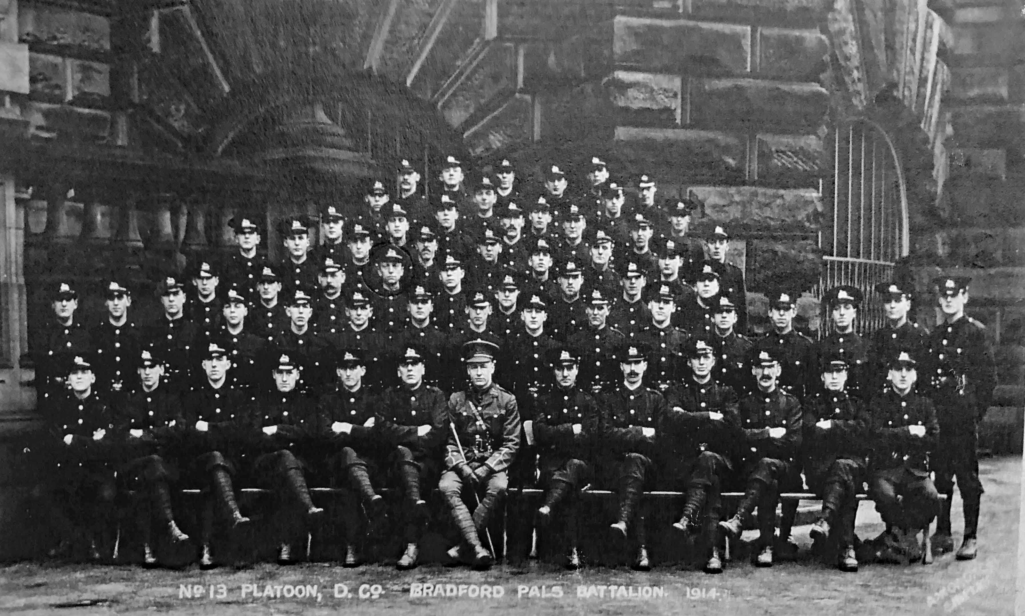 taken in Bradford in 1914 shows him in the 3rd row with other Pals in D Company.