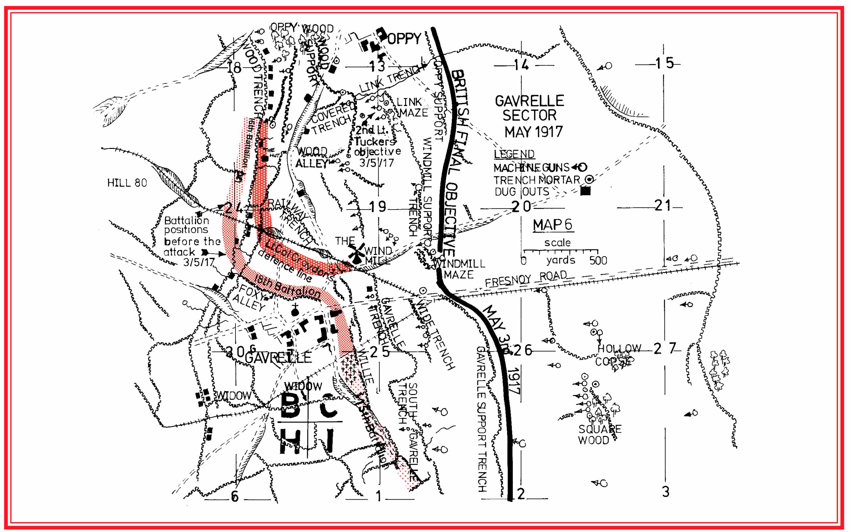 The 16th Battalion was positioned in trenches between Gavrelle and Oppy, roughly where an electricity sub-station