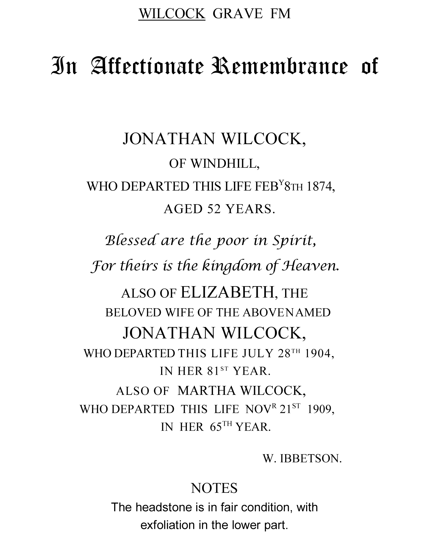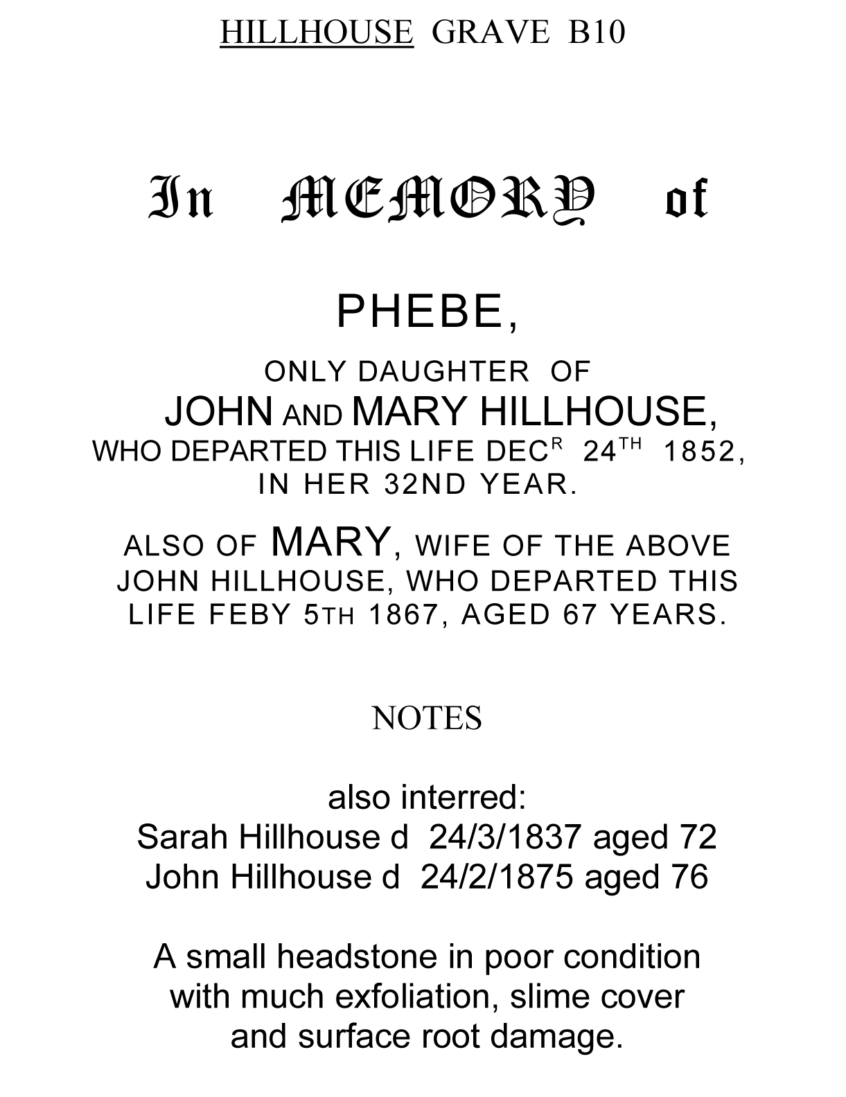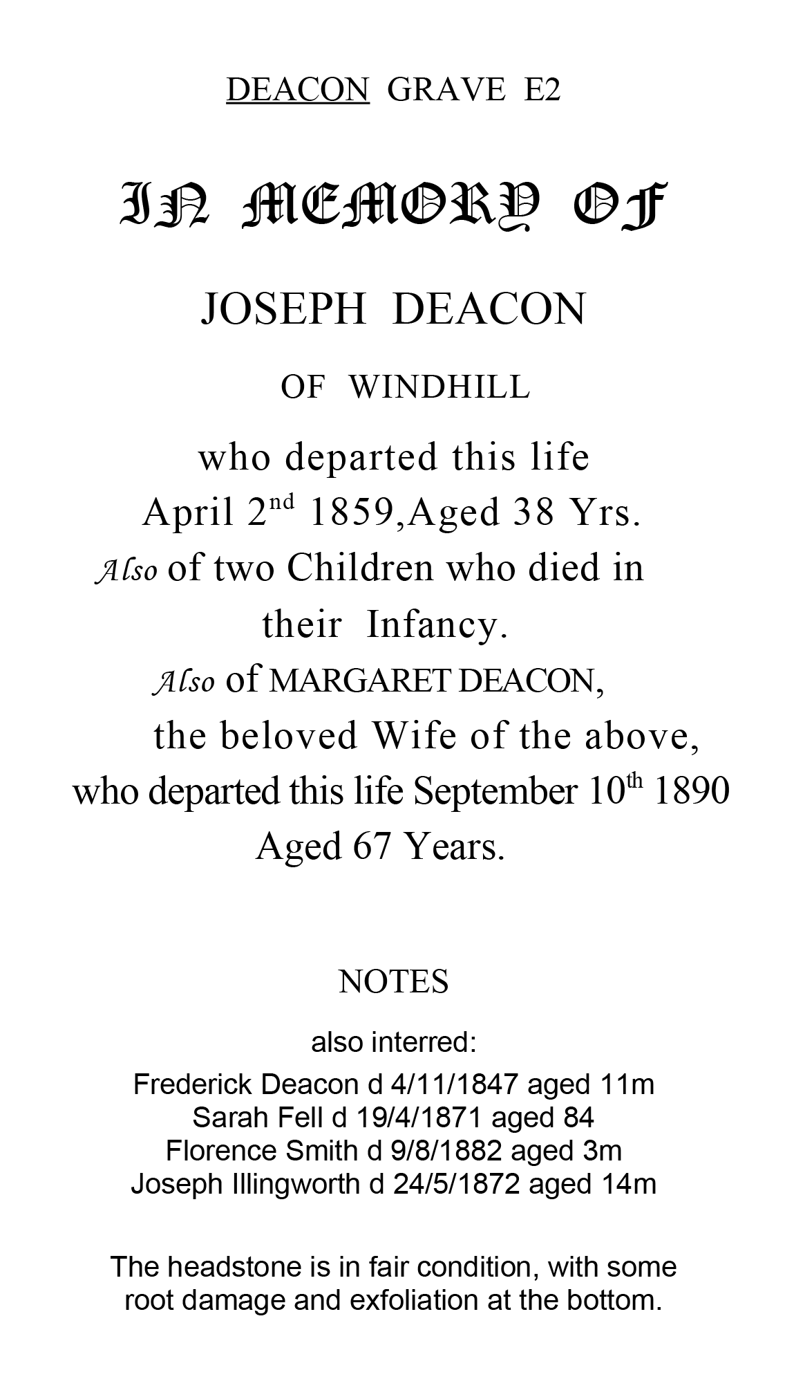those of Fell and Whatmough, were relocated around this time to empty plots in the Front Burial Ground.