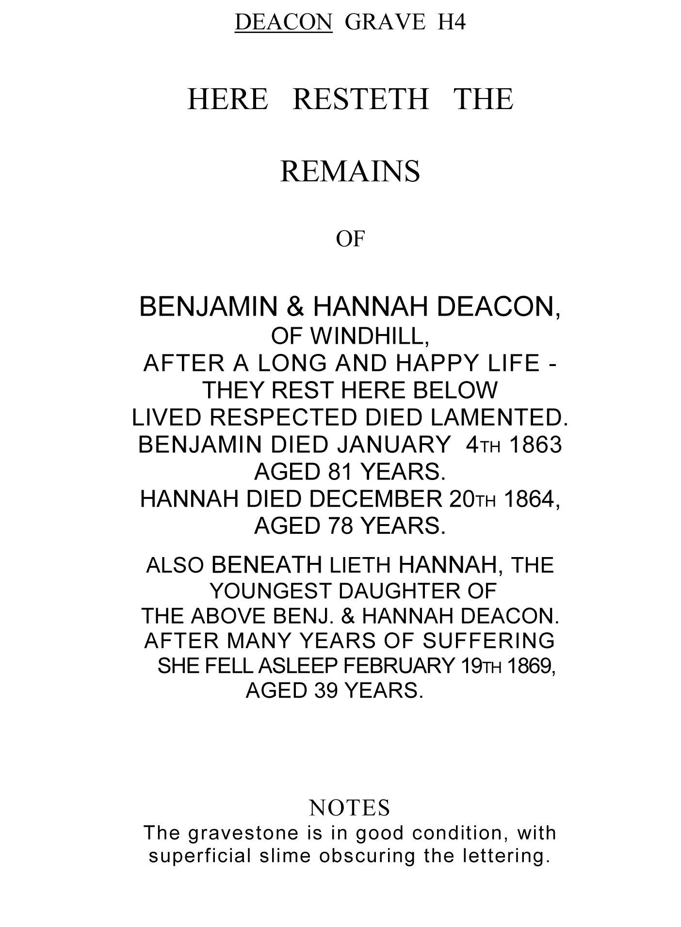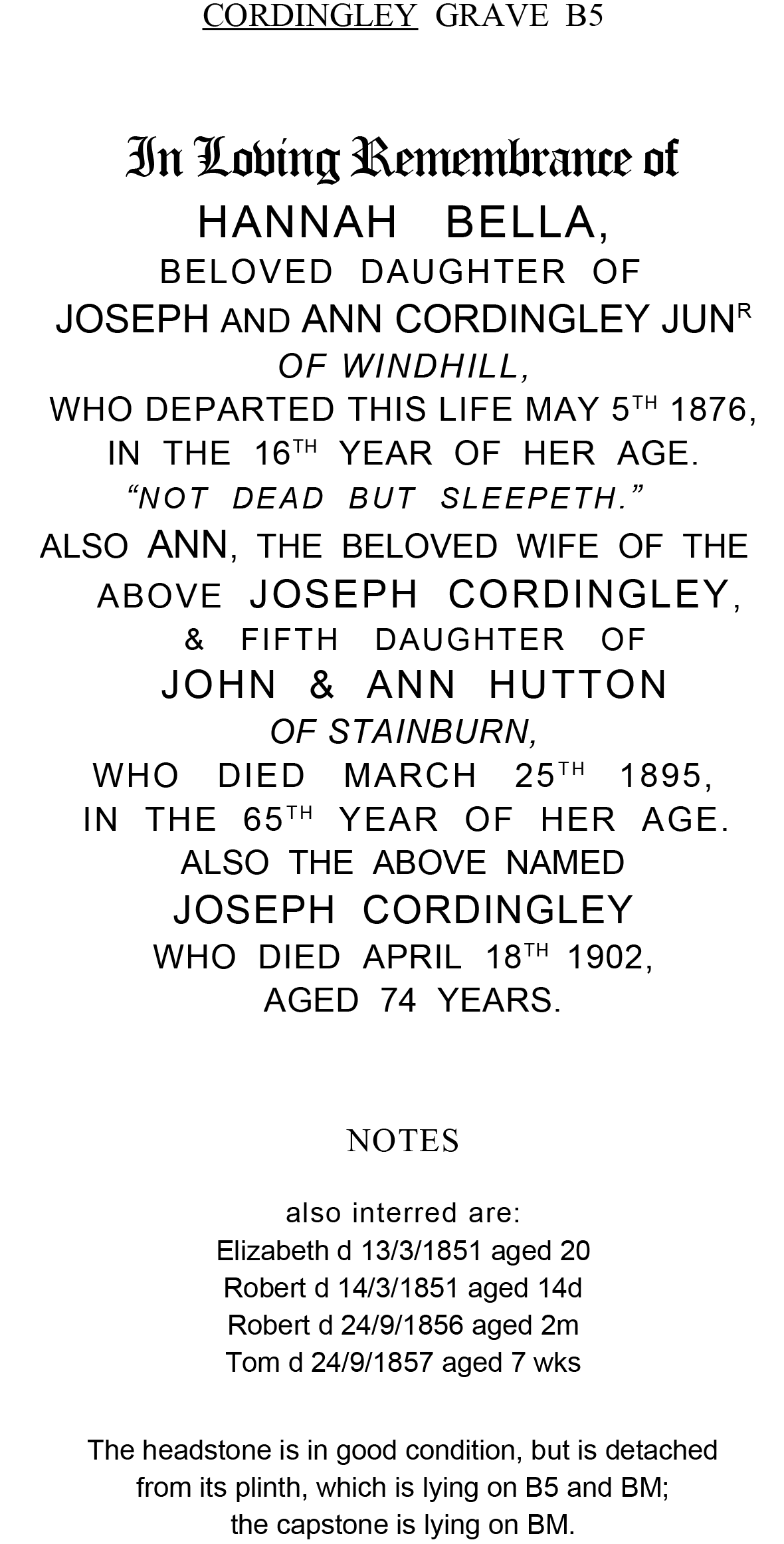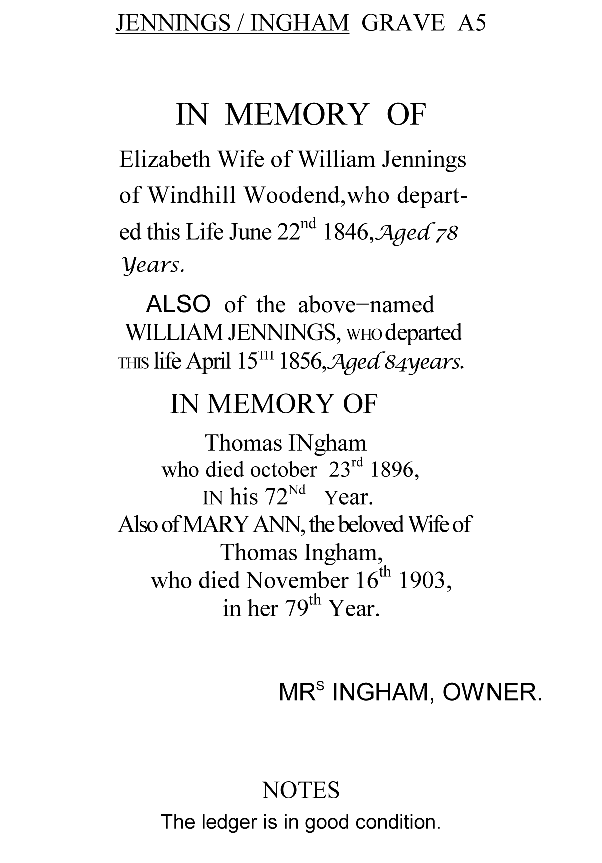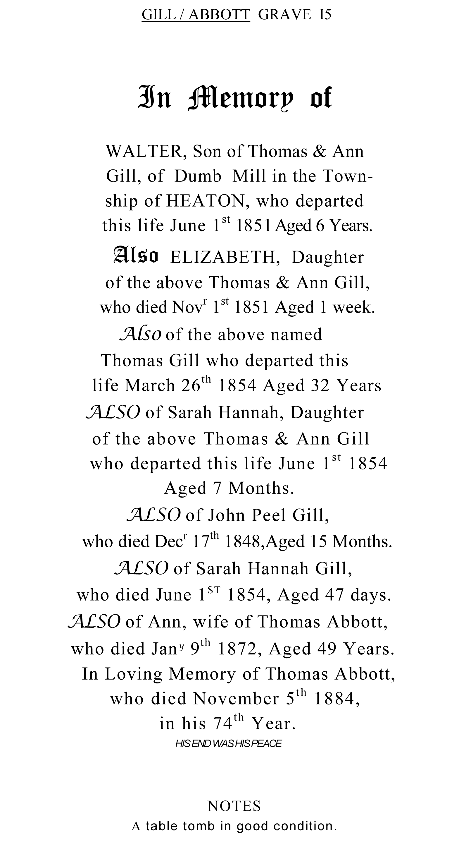 those of Fell and Whatmough, were relocated around this time to empty plots in the Front Burial Ground.