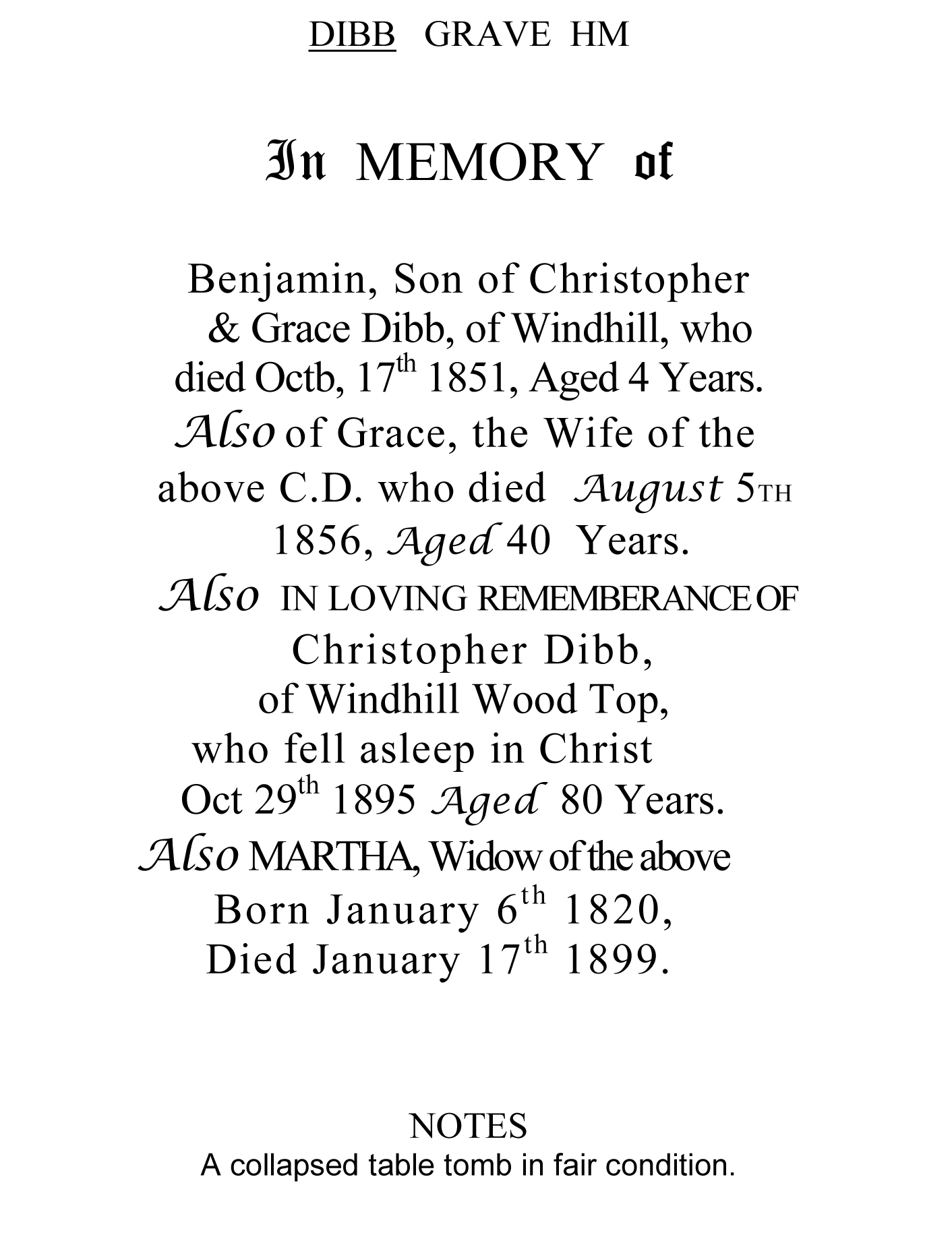 Transcriptions of the visible headstones can be viewed by clicking a Name from the list on the right.
