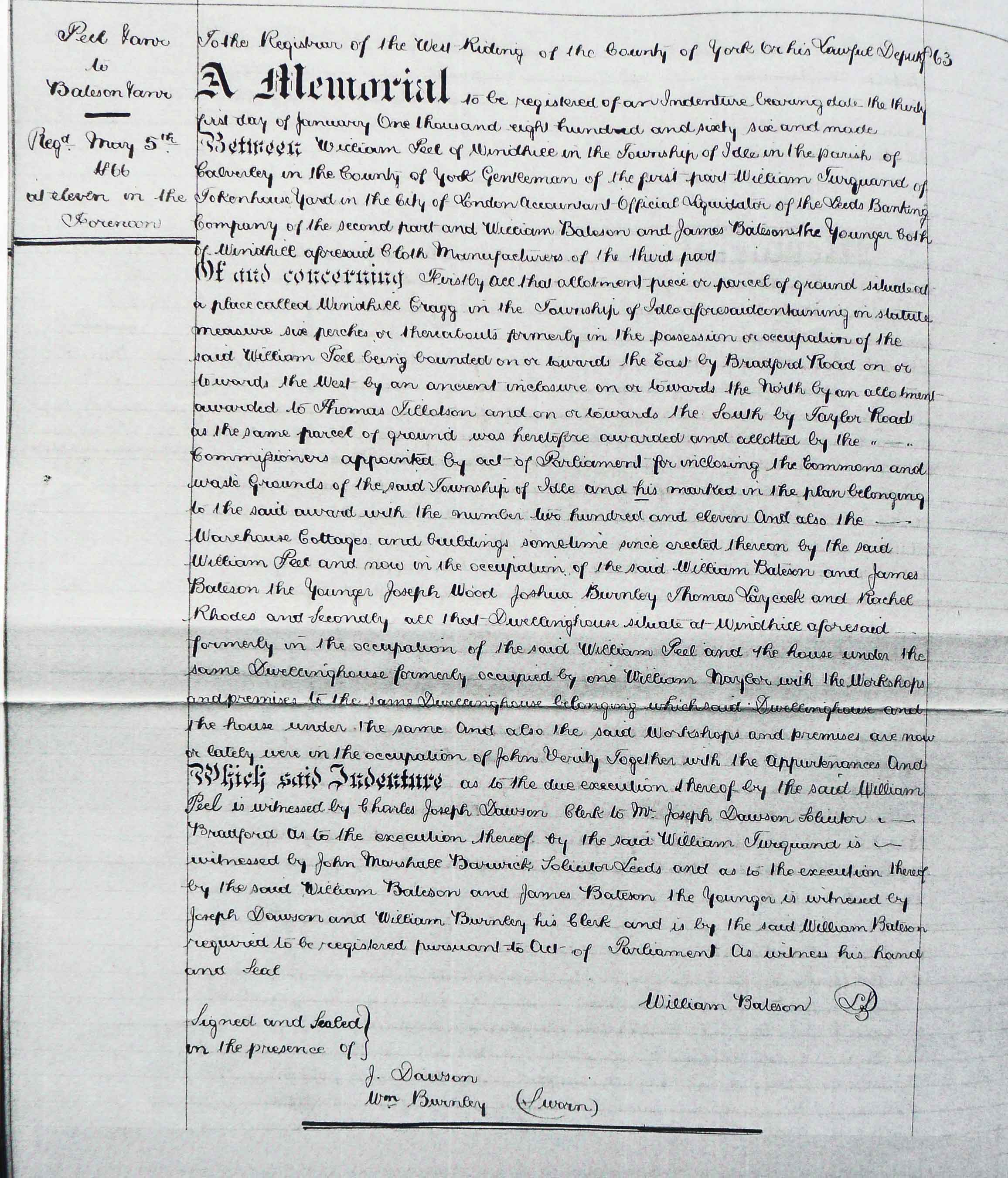 William Peel next appears as a Burgess in the 1835 Idle Poll, when he voted for John