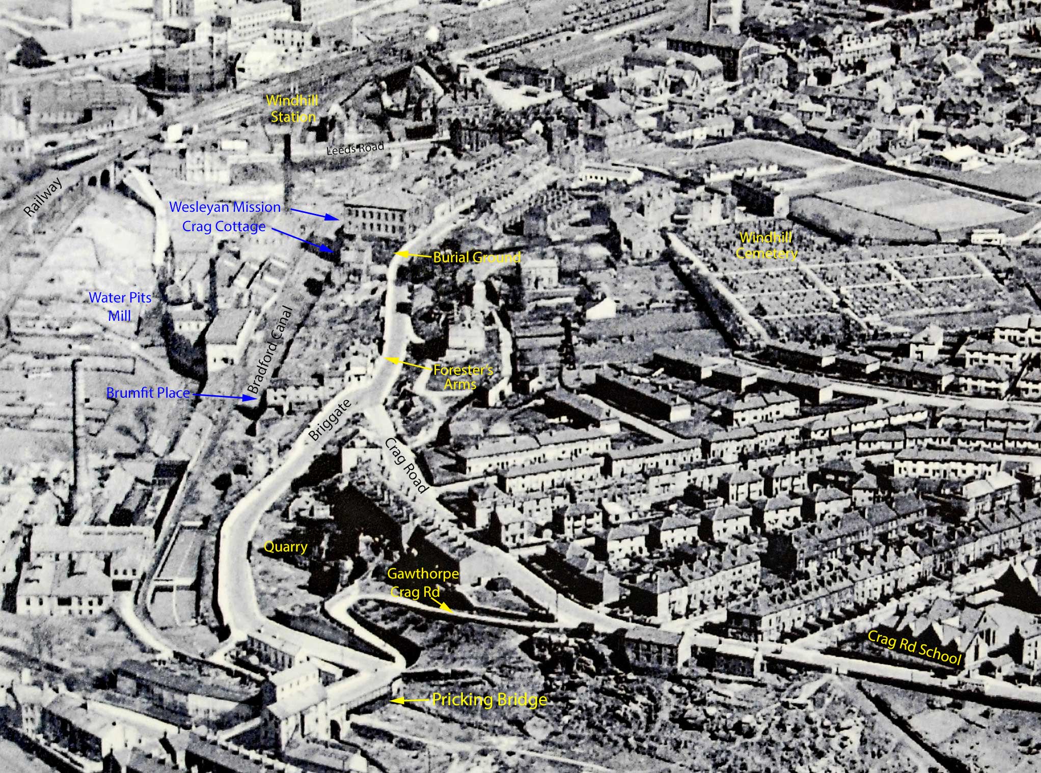 towards Leeds Road and the old Windhill stations (at the top of the image). This
